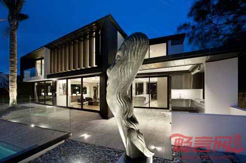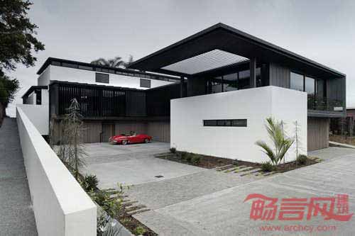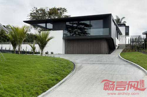 设计师的具体做法是使停车空间围绕入口庭院而设。车库门隐藏在毗邻的雪松环境中,还包含了入口处,一个三层高度的中庭吸引客人进入起居空间,并最终领略到奥克兰壮阔的风光。建筑配备的无边际泳池的轮廓契合了Orakei basin湖的形状,使湖景贴近了主人一家的生活。