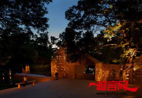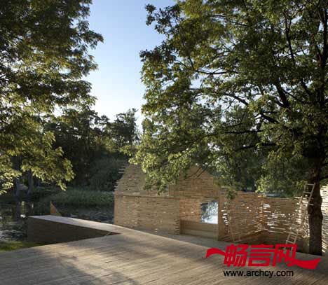 剧院将花园、树木和池塘都融入在自己的范围之内,让它们也能成为舞台背景的一部分。