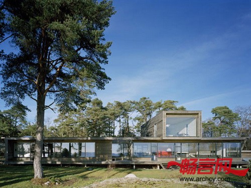 Plus别墅由瑞典Waldemarson Berglund建筑事务所设计,共有两层,它的幕墙完全由松木做成,松木只是简单的锯开之后就使用了,而且会随着时间的推移变成灰色。