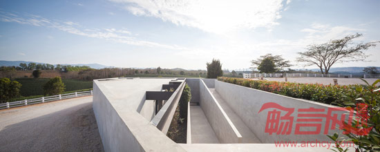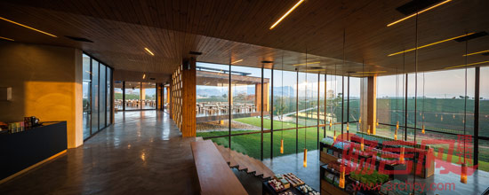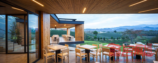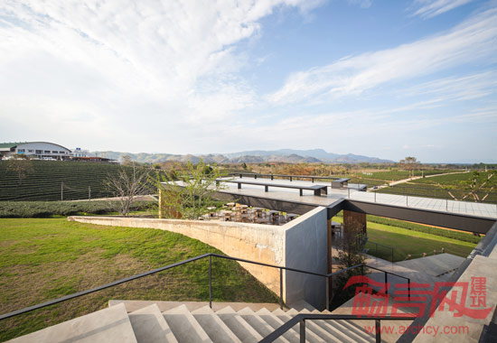 山丘延绵的Choui Fong茶叶种植园内,坐落着一间茶馆。建筑师并没有把茶馆设计在山丘高处,而是布置在山丘的隐蔽处,同时使建筑体向外伸出,从而可以看到茶园景色。