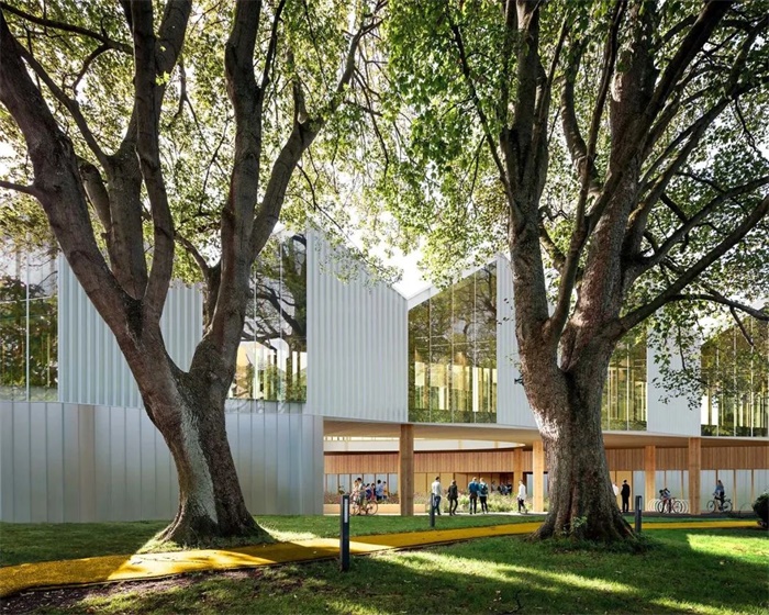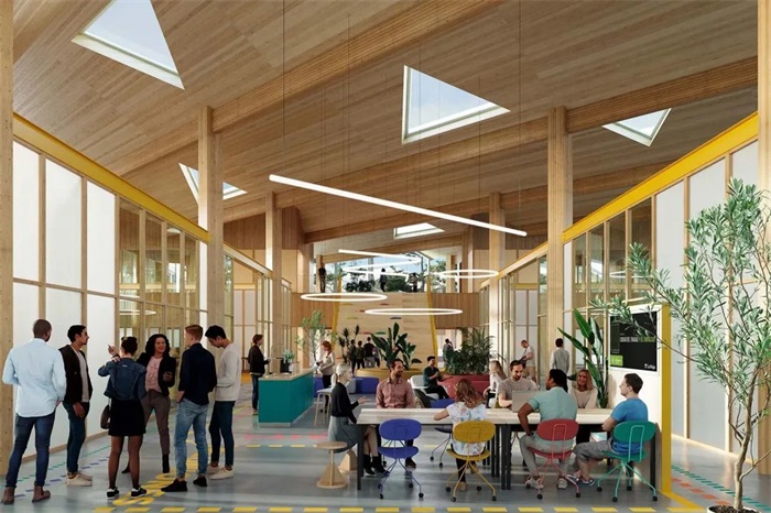 自然光、植被、大型工作区、用于社交、休息和家庭欢聚的开放空间、木结构的温暖,甚至建筑周围环境中的大片绿地,都是由于该项目旨在成为一个增进人们幸福感和舒适度的建筑。研究中心还致力于通过前卫和可持续的措施,基于对传统方法的解读与最先进技术的相结合,包括使用木结构、模块化建筑措施,以预制和工业化系统使其更高效、灵活、经济,并易于扩展。