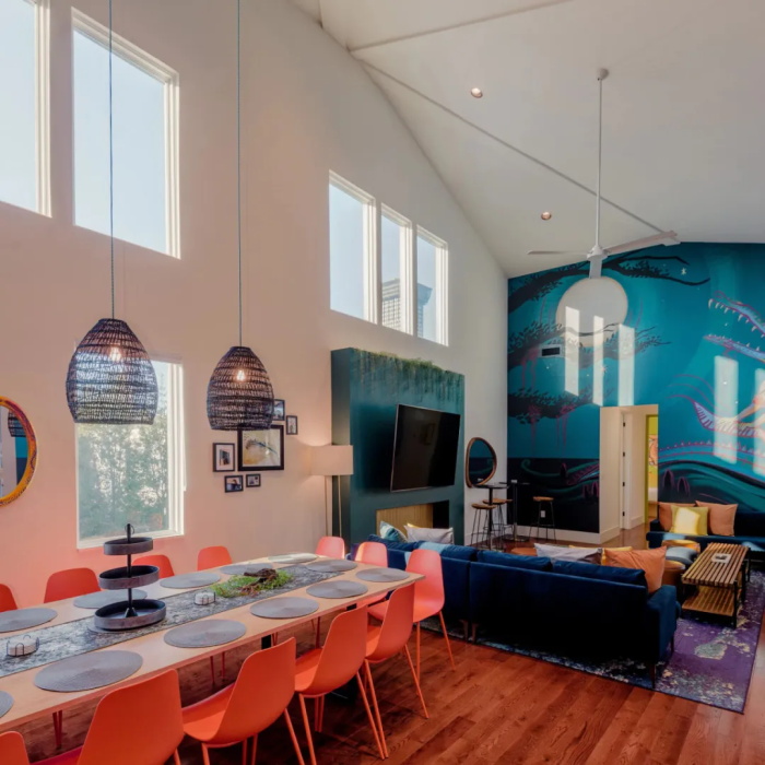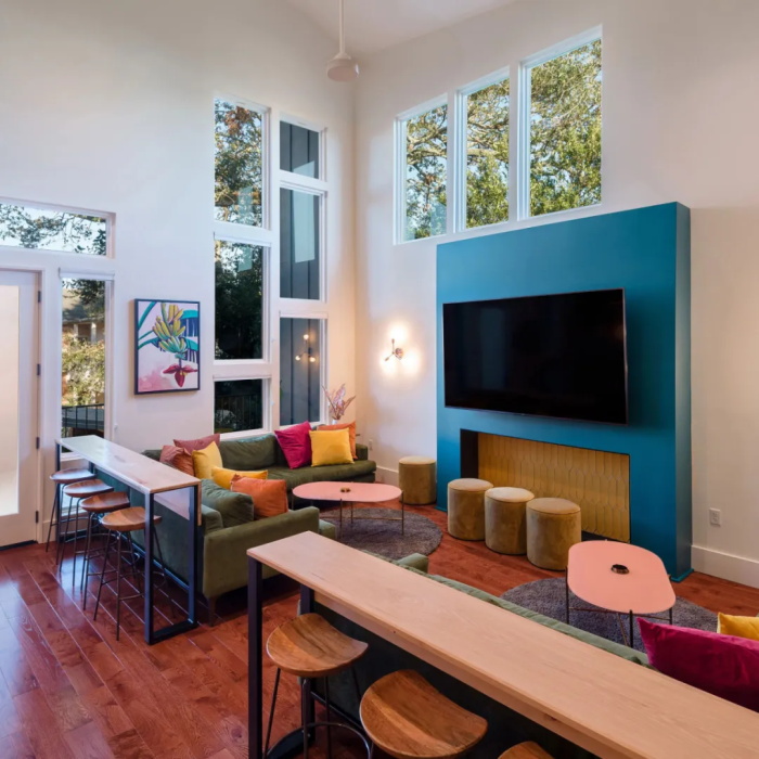 这座新颖的套房式酒店专为团体住宿设计,位于城市中心一块受限的地块上,围绕一棵110年树龄的橡树而建。葱郁蜿蜒的入口廊道形成一条有顶盖的小径,将客人引至场地核心。
