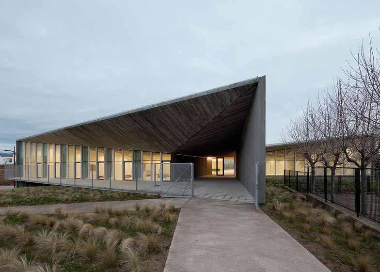 项目位于西班牙Haro镇郊区的山坡场地上,由Taller Basico建筑事务所设计。设计方案基于位于山坡之上的场地地理条件。设计师透露,“我们将幼儿园构想成巨大的岩石,成为这座缺少建筑的城市醒目的景观。”建筑一层涵盖维护和服务设施,由巨大的整体楼板包围;二层拥有朝向小镇的视野,表面使人联想片层岩石的尖角。儿童通过建筑块状外壳的夹角混凝土走廊进入幼儿园内部。