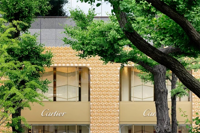 卡地亚新店,坐落于大阪高端商业零售街区,心斋桥商圈的街角,与苹果、耐克及巴宝莉店铺的金属与玻璃立面对角而望。Klein Dytham architecture事务所为卡地亚店铺打造了全新的三维木制立面,给人以温暖且亲密的感受。