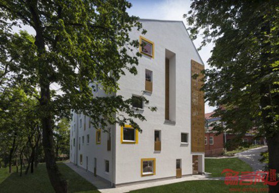 布达佩斯盲人学院成立于1898年。大多数学生是孤儿,而且身患视力和智力障碍在内的多种残疾。国家提供财政支援,供学生生活到18岁。成年之后,学生无处可去。A4工作室设计了这所面向18岁以上“儿童”的住所。新建建筑与已有建筑通过桥梁相连。五层建筑的一至二层为公共空间、活动室和餐厅。3层及以上为卧室。