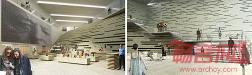 设计创建了延伸到水域的公共空间,同时创造了一条围绕建筑物、蜿蜒通行的长廊。博物馆前方创建了多个公共广场,不仅成为室外展览和活动空间,也将海滨塑造成当地人和游客使用的公共空间。