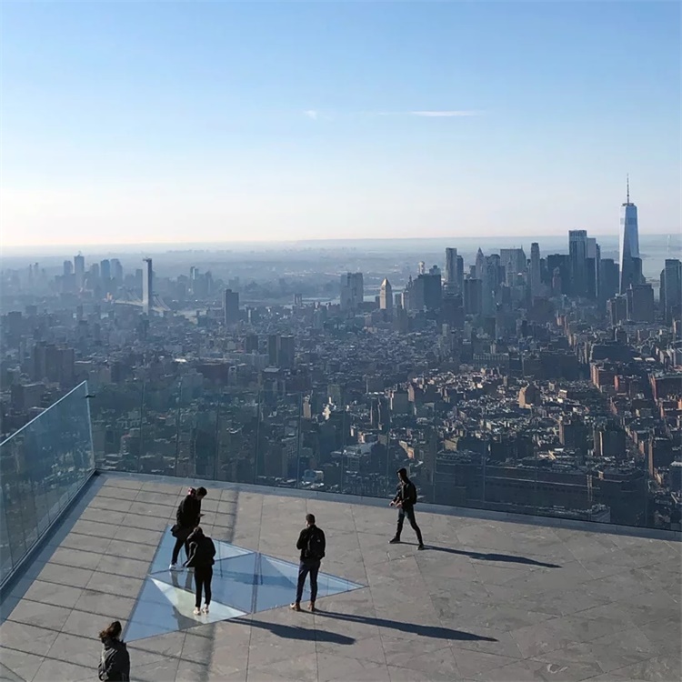 Edge可通过“商店和餐厅”、哈德逊庭院室内购物中心进入。52秒的电梯旅程将游客带到7500平方英尺(700平方米)的室外观景区前,游客首先会感受到由罗克韦尔集团设计的沉浸式多媒体到达体验。从大楼100层延伸出近80英尺(24米),空中甲板上可以看到纽约著名的天际线和更远处的城市全景——视距超过80英里(129公里)。