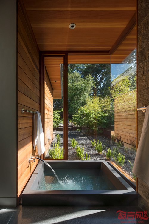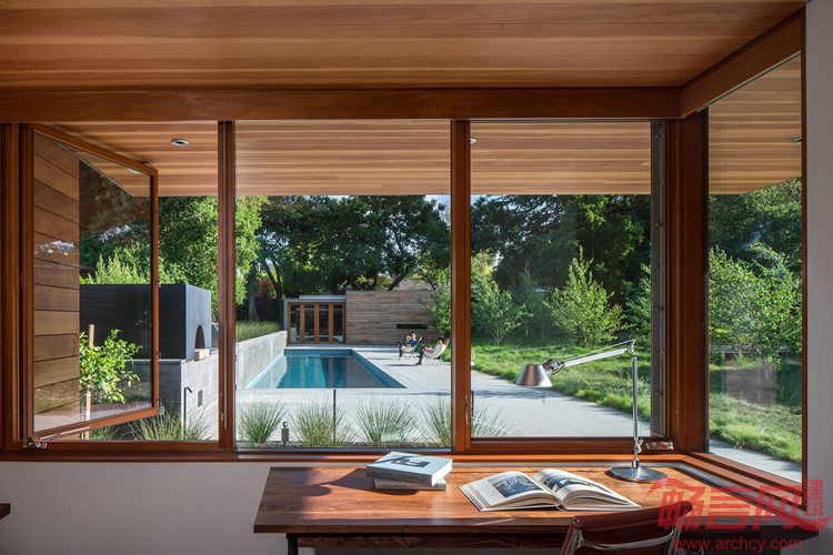 Bohin Cywinski Jackson公司设计了美国加州Los Altos的硅谷住宅。这座建筑带有冥想花园和游泳池,家庭住宅附带主卧和客房,坐落于一处绿树点缀的成熟住宅区中。设计师表示,项目周边有高大的树木和住宅楼,具有良好的私密性,让年轻的业主家庭免受城市喧嚣打扰。设计师公司在宾州、西雅图和旧金山分别有三个公司。这座一层建筑布局和细部都很简洁,同周边环境有千丝万缕的关系,营造出沉静、安详的住所氛围。
