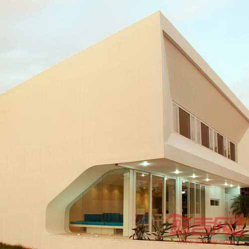透过南向的窗户和柱子,开放区域俯瞰后院的烹饪、用餐和休息区.起居室位于泳池占地一侧,利用蓝色水元素,模糊了室内外空间的界限。这种短暂的脱离相当于通向住宅自由立面,向前迈进了一步。建筑结构使用了混凝土和混凝土砌块,与当地施工复方氨保持一致。