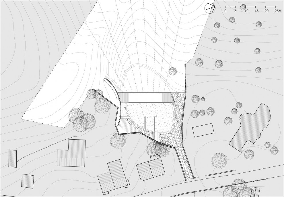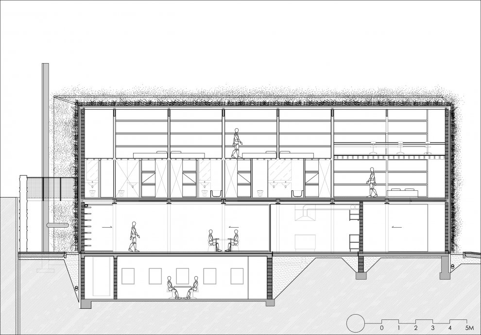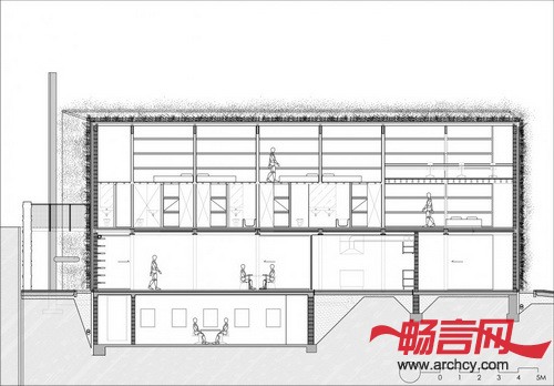 住宅的一大特色就是它有一个植被幕墙,它的北、东、南面全是封闭的。与它们相反,西面则是一片玻璃幕墙,仿佛一块大窗户一样。