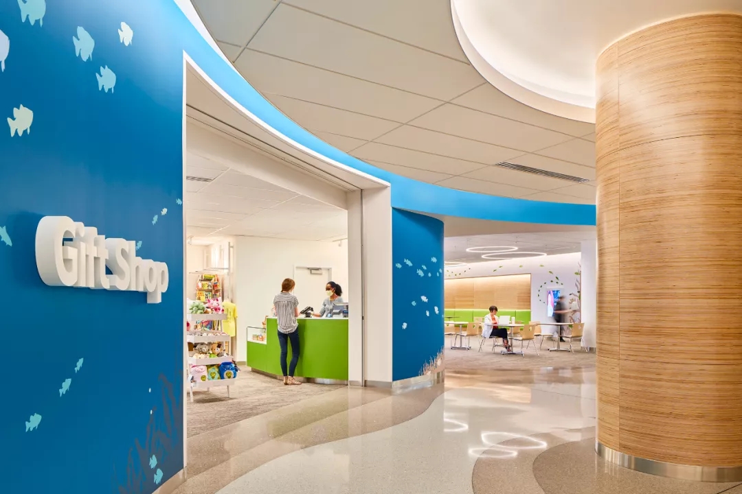 诸如屋顶游戏平台和健身房等配套设施,旨在为患者提供多种放松休息的方式,在住院期间保持其活跃状态。两座景观庭院为患者带来了额外的疗养机遇,有助于患者与户外产生联系,享受户外体验。馆内还提供了丰富多彩且舒适周到的便利功能,如咖啡厅、礼品店、庇护所、家庭资源中心和兄弟姐妹游戏会所等,以确保满足家长的需要,使他们能够积极参与到孩子的治愈旅途当中。