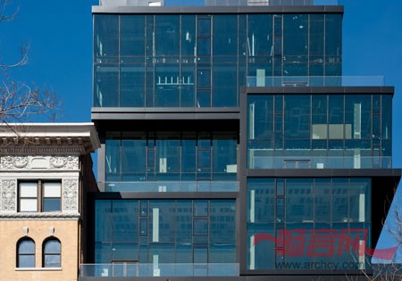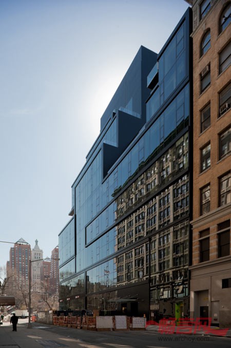 Chen指出,大楼的外观一整天都会发生改变,游客访问的时间如果凑巧的话,铸铁幕墙可以被看见。从行人的角度来看,大楼建造在第15大街有点不和谐,但Chen表示这个特殊的幕墙全部采用反光玻璃进行建造,以反射出街道对面的古典建筑。这座还未入住的大楼尚未充分地发挥它的潜力。“该项目具有进出两重性的特点,”Chen说道,“在该大楼投入使用后,该特点将会发挥的更加淋漓尽致。”