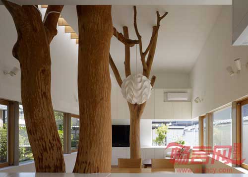 设计师表示,设计的主题在于利用这些树木,同时为业主营造新的居住空间。砍树过程中,业主甚至邀请了神道教教士举行了驱邪仪式。