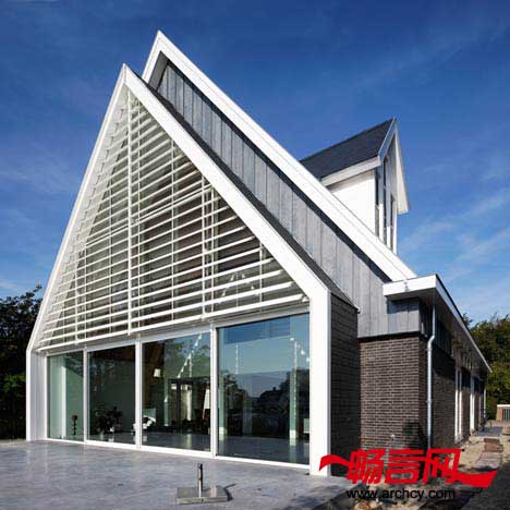 这样,从“教堂里的住宅”就可以直接欣赏到窗外的美丽景观。而十字型翼部就成为了房外的公共区域和里面住宅之间的过度地带。