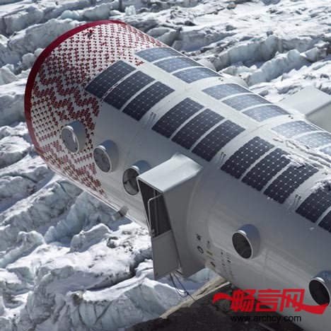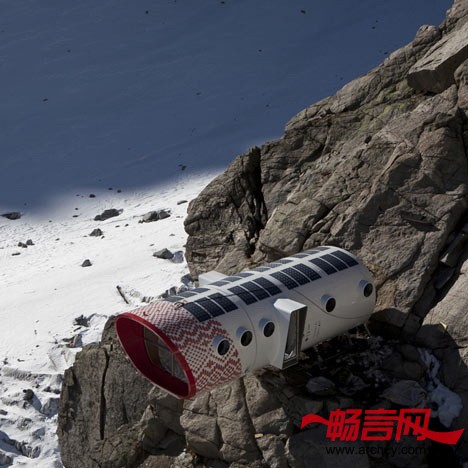 这个小屋的名字叫“Gervasutti新避难屋”,由意大利LEAP工厂及建筑事务所设计,该事务所专长于建造极端气候下的模型空间建筑。