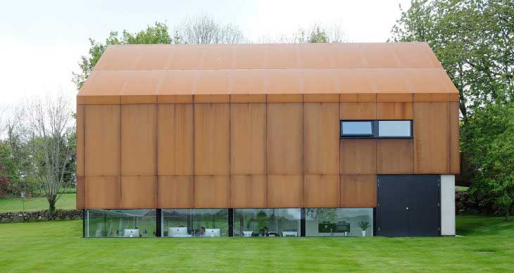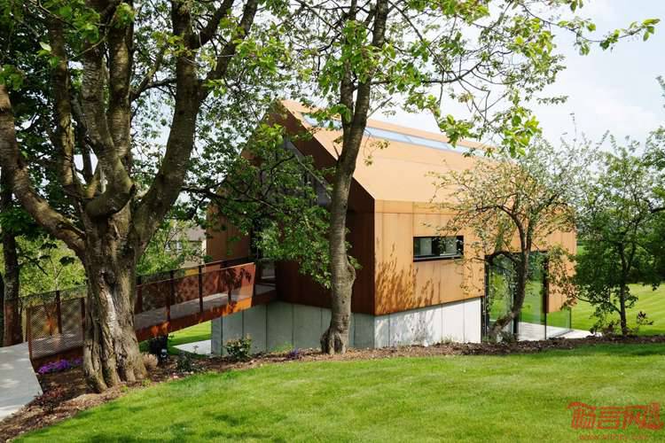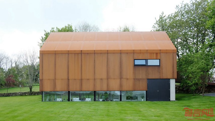 McGarry-Moon建筑事务所完成了其位于北爱尔兰Kilrea的工作室设计,带有三倍层高的办公空间位于草地环境中,并设有预制铁锈板山形墙遮盖物。办公室位于事务所两位创始人拥有的Fallahogey住宅花园中,2005年由二人亲自设计。原先他们在住宅内办公,由于规模扩大,需要更大空间,于是在原址上扩建。
