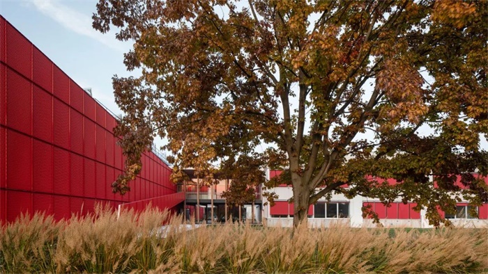 从建筑工程的角度来看,该项目的干预方法是以“再生”为重点,用轻质的和可恢复原状的新建筑取代现有的工业厂房。在景观层面,新增的植物种植和绿化区域使场地与周围的农田、山丘“重新缝合”。