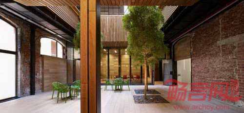 建筑的首要目标是使自然光线进入整栋建筑,此前建筑一直处于昏暗的光线中。为了达到该目标,设计师不仅重新开启了若干窗户和天窗,并对内部结构进行了改动,创造了一个双倍层高的中庭作为建筑大堂。直接光照和自然植物赋予了会议场所清新灵动的个性。