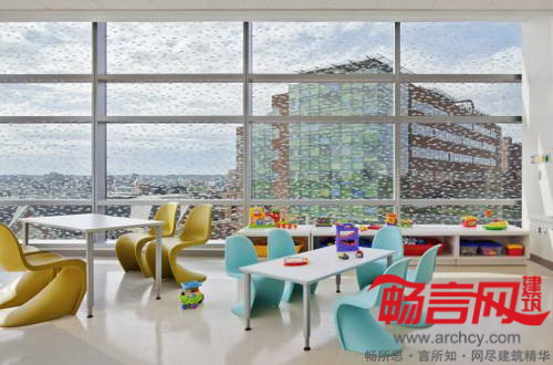 设计方同景观设计师、工程师、艺术设计师通力协作,设计了一系列建筑。院内样貌焕然一新,设计着力强调了空间体验,而并非如大多数医院一样,只注重使用功能。建筑设计考虑到提供视觉刺激的心理效益,诸如颜色,开放空间,绿色空间和环境内充足的自然光线。
