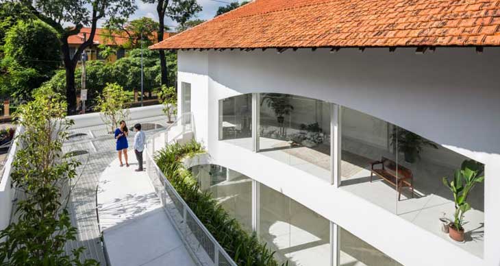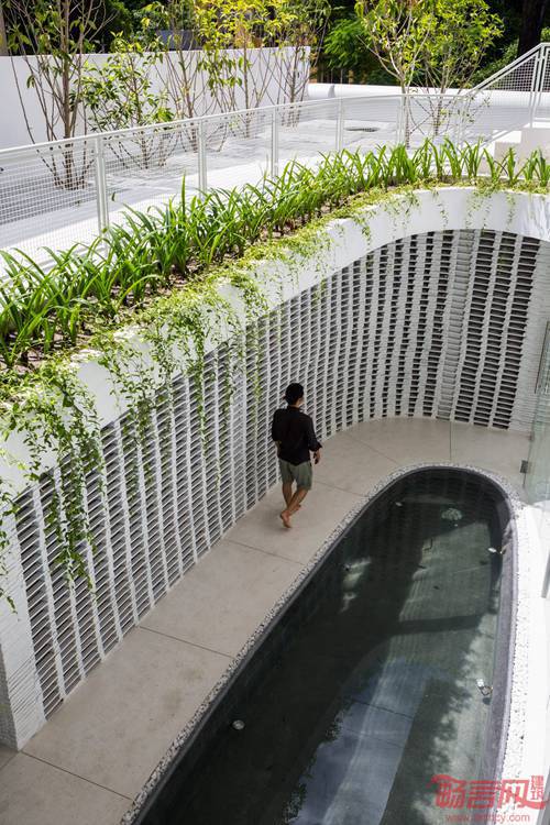这是一座位于胡志明市的1940年代住宅,一条长长的光井横亘在建筑的外立面上。项目由当地Kientruc O工作室完成。名为D住宅的项目包含拥有七十年房龄的砖砌两层楼以及二十年前的垂直四层铁质增建建筑。设计师在两座建筑之间引入了光井结构,让居民同喧嚣马路隔开,并提供了必须的户外空间。