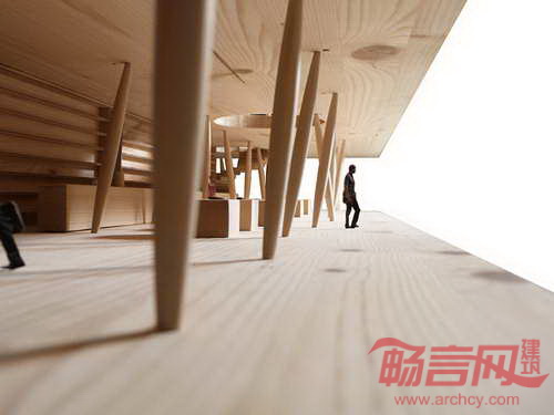 Onsitestudio在2015年米兰世界博览会服务区设计竞赛中成功中标。整个项目将包含13座大规模建筑、17座中等规模建筑、16座小规模建筑,总建筑面积达6.4万平米,为这次世界盛会提供配套设施。建筑结构统一采用木质原料,运用不同尺度响应各自目的。设计理念是基于创建空间而非建筑。一系列锥形立柱令人联想意大利古典柱廊,支撑其预制混凝土楼板。