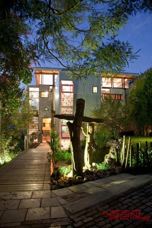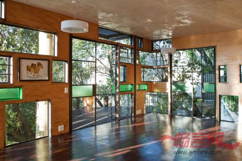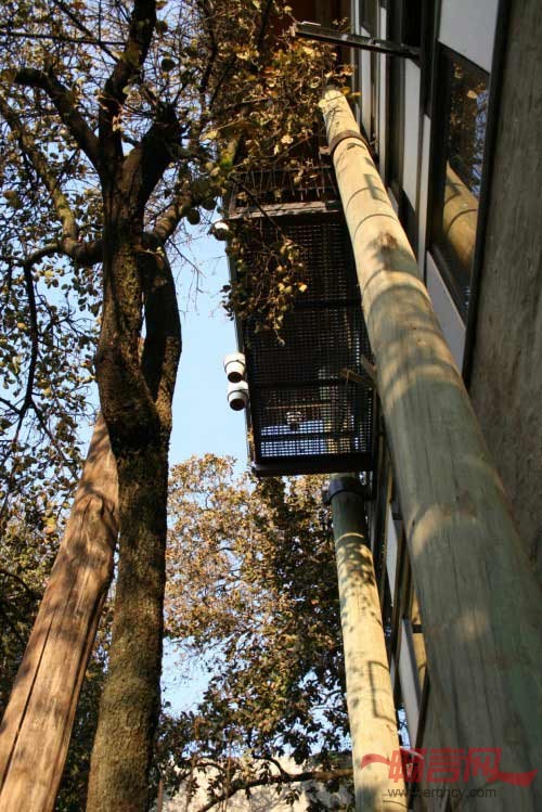 为使其悬于天然岩壁和当地特有的一棵80岁老树之间,建筑师采用了六根9.5米长的胶杆支撑该住宅,每根胶杆的承重超过半吨。