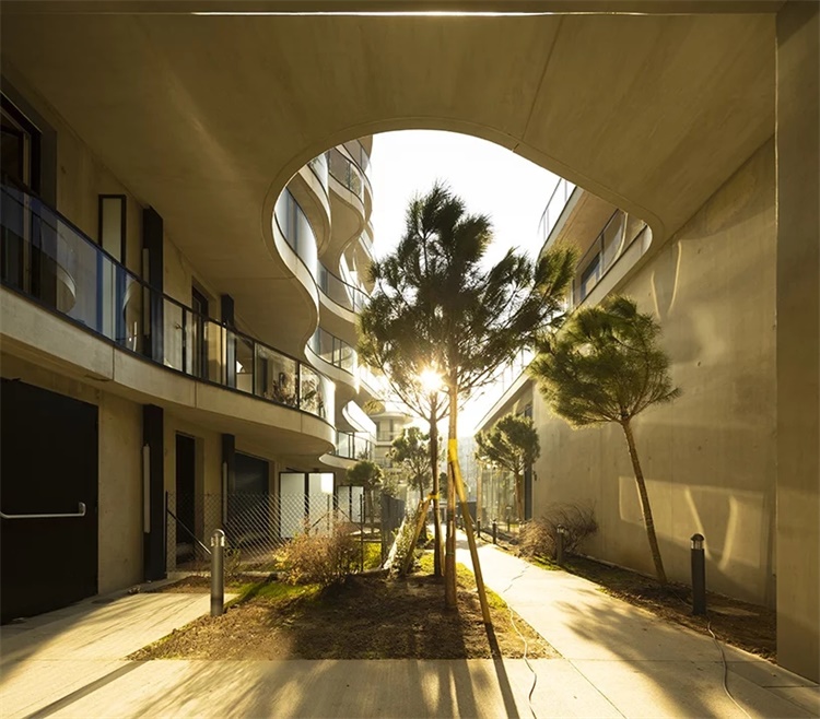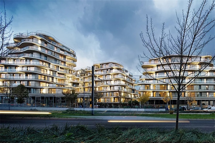 法国建筑师克里斯托弗·罗塞尔完成了“Courbes”项目,涵盖巴黎北部郊区Colombes的134套公寓。这一开发项目是更广泛的城市更新计划的一部分,由于其折衷的建筑风格,具有高识别度,融合20世纪八九十年代的平房和公寓单元。靠近拉德芳斯商业区,新的电车可到达该社区,激发了区域的转变。