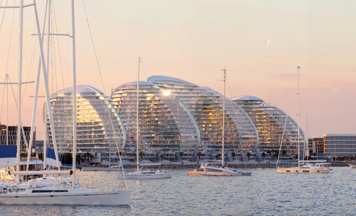 Oystra项目位于阿联酋哈伊马角酋长国的阿尔马尔詹岛(Al Marjan Island),占地12.8万平方米,临海而建,规划包含950套一至四居室公寓、复式住宅、顶层公寓和滨水别墅,同时配备了丰富的购物、餐饮和休闲设施。