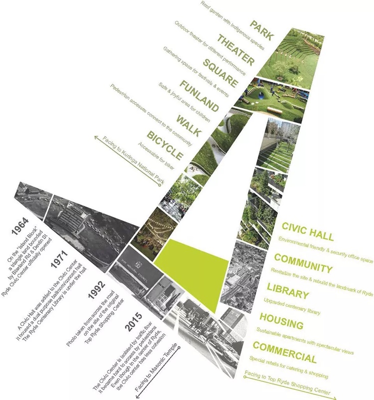 设计我们的赖德:赖德市民中心概念设计竞赛是由澳大利亚悉尼赖德市政府举办的备受瞩目的国际竞赛,此次竞赛是基于赖德市 2025 年社区战略计划,以引导赖德市民新的生活方式,提升附近社区的办公、居住生活条件为原则,旨在征集结合市政议会厅,市政办公室,开放空间,商业活动和住宅为一体的设计方案,打造城市未来的市民中心。