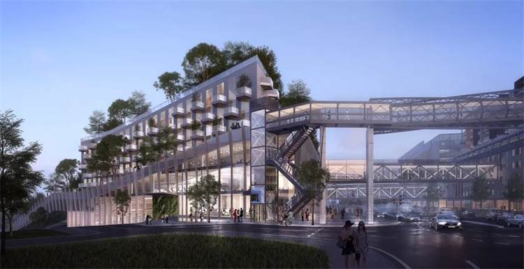 基于上述分析,市民中心需在社区中扮演多重功能角色,同时人流的组织对项目产生了巨大挑战。根据功能的要求,我们将多个水平和竖向的共享空间巧妙地穿插组合形成了具有活力的综合体,并通过连续开放的屋顶绿化平台系统连接了街道、市民中心以及购物中心,提供了阅读、社区活动、儿童游乐等多种功能,开放的社交互动平台也可以根据日后使用的不同需求转变功能 , 成为社区生活的一部分。