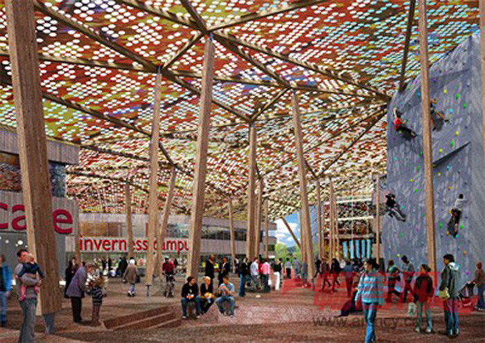 在英国的因弗内斯市郊,一个新大学校园将成为众多高等教育机构集聚的重要中心,7Ns建筑公司完成了该大学教学楼一期施工图的部分方案设计,已设计出了教学楼的主要结构框架。