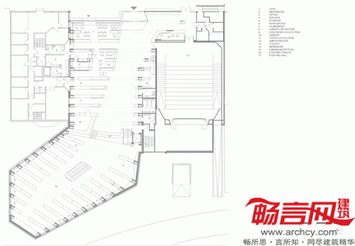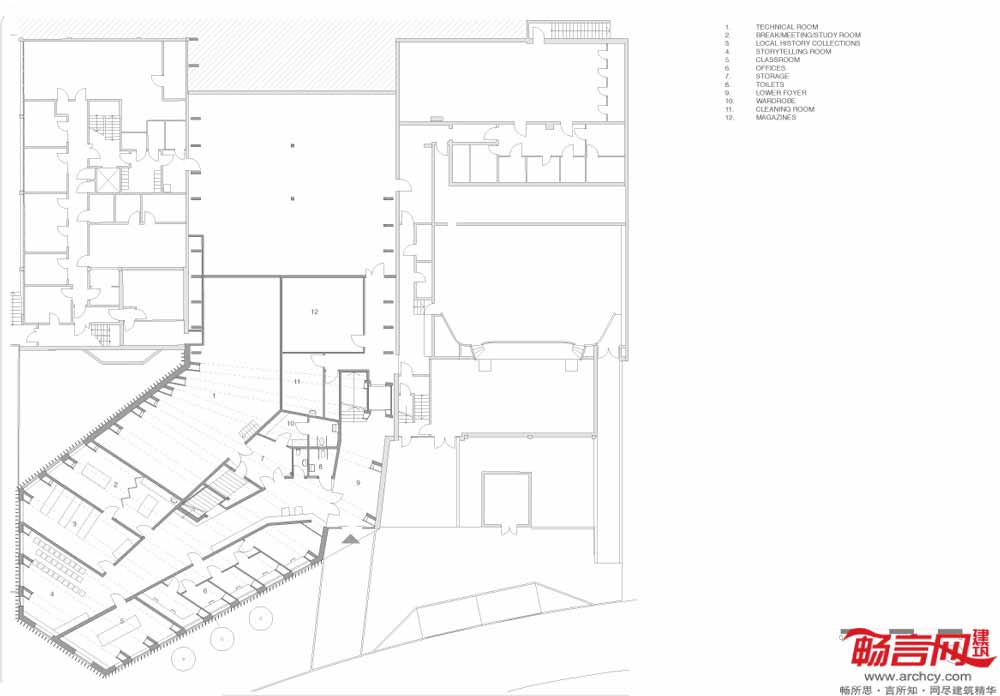 楼梯通往的负一层包含了办公室、教室和本地历史藏品。