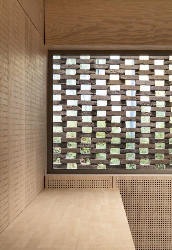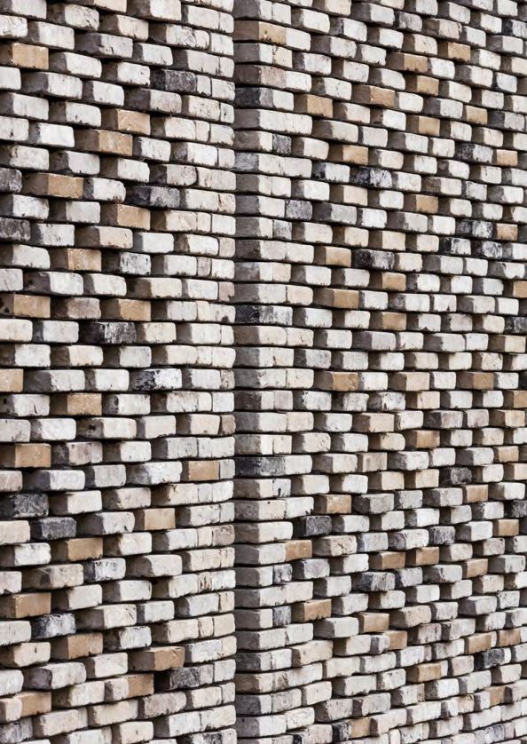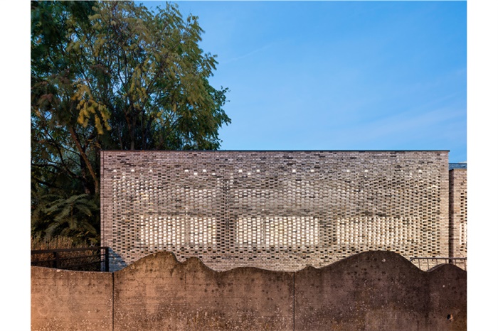 建筑师选择将外立面整体铺设新的砖块,并对墙面开窗做了“阿拉伯小窗”处理,通过材料的统一运用,抵消了结构的复杂性。手工制作的砖块采用干砌工艺。色彩的细微差别让连贯的外表皮变得生动活泼。