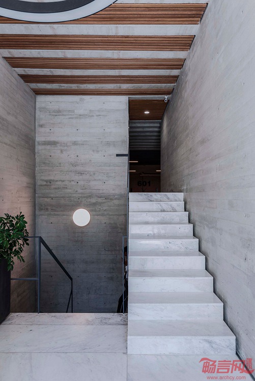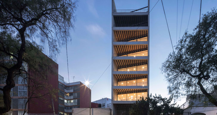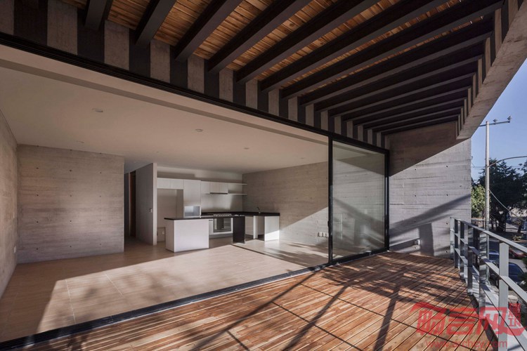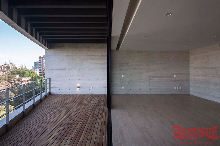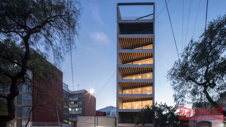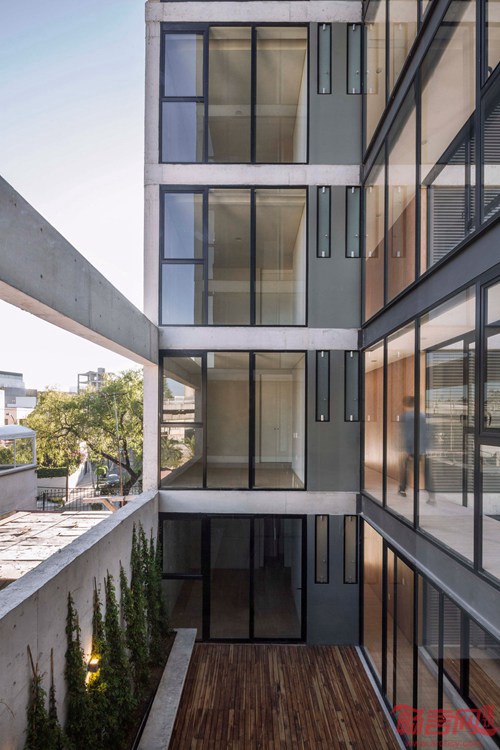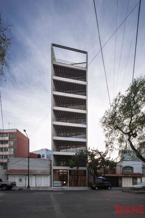 建筑师Carlos Marin设计了墨西哥城Rodin 33住宅楼。项目名称来源于其所在的道路。场地仅有7.8米宽,28米长,相当狭长的形状让建筑外形显得自然而然。这座建筑每个整层涵盖一套公寓,顶部两层为复式公寓,同时设有一层大堂和地库。建筑外立面为简约混凝土框架,外立面遵循铺道线条,构成了建家教夹角。