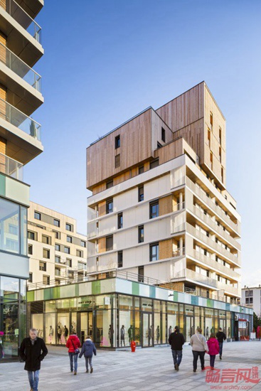 项目坐落于法国阿尔卑斯山脉沿线Annemasse的老城中心,涵盖社会住宅、公寓、酒店住宅、酒店、办公、商店和影院。项目由Ameller, Dubois & Associes公司设计,一层是商业设施,二到九层是公寓,为社区提供了一条龙活动空间。公寓楼由两部分组成,下层为紧凑型水平线条空间,阳台设在边角。上层设有结构简单的公寓。材料的不同选择进一步凸显了空间外观的两重型特点。