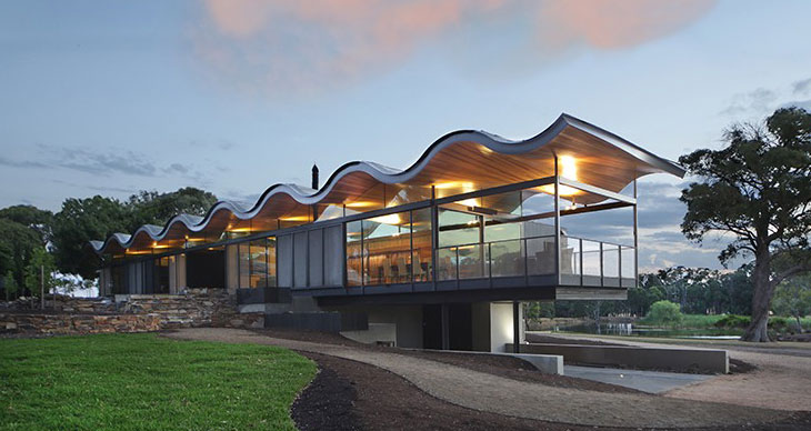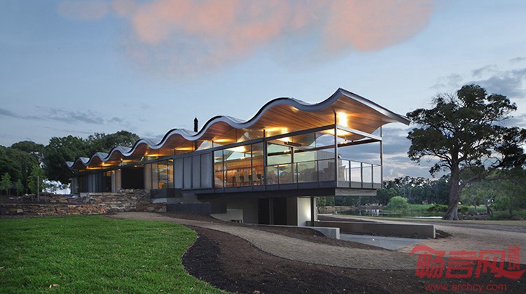 Lauriston住宅是位于澳大利亚维多利亚州Kyton的一个私人项目。建筑两旁带有对称的橄榄树,建造采用了被动式绿色设计,材料采用了当地常见的材质和纹理。项目由Seeley事务所完成,这一乡村住宅的显著特色是其波浪形的屋面,构成了清晰的结构韵律。