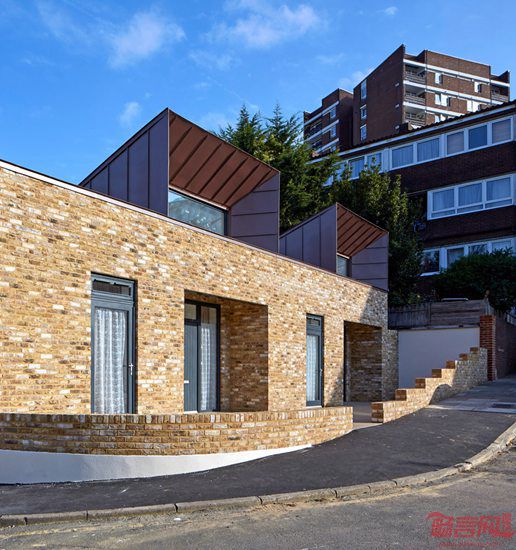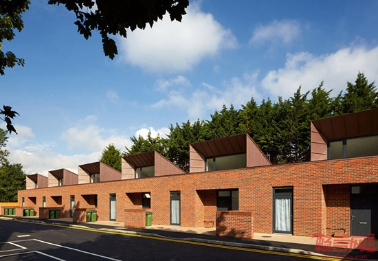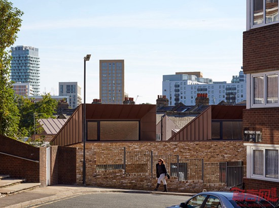 Bell Phillips建筑事务所设计了英国伦敦格林威治皇家自治市公租排屋。项目采用砖砌结构,拥有引擎罩外观的屋面,可允许自然光线投射到屋内。项目面向残疾人和老年人,提供经济实惠的公共住宅。Bell Phillips受委托设计公共住宅示范项目,目前已在英国6座城市完成了22个供出租的社会住宅。这些一层排屋比原先设有车库的住宅更节省用地,业主普遍年龄超过60岁。