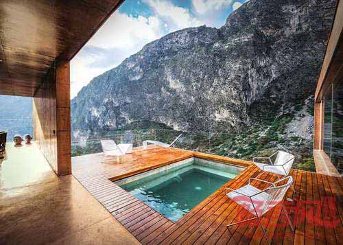 建筑师David Pedroza Castaneda设计了位于墨西哥西北海岸El Jonuco的Narigua住宅。建筑包含一系列重叠的悬臂结构,从山腰处水平伸展,形成俯瞰绿树景观的僻静住所。山地景观为红色混凝土住宅提供了田园诗般的背景。为了避免对现有树木的影响,同时为了迎合不平坦的山地地形要求,建筑师设计出了三座两层前后交错的建筑。Castaneda表示,“这个群山环绕的环境令我联想起无数墨西哥小城,那里居民伴高山深谷而居,环境具有典型的植物和野生动物特点。”