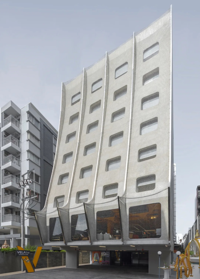 近日,一家全新设计酒店于曼谷暹罗广场这一充满活力的中心地带盛大开业。暹罗广场是一个以丰富文化底蕴和蓬勃氛围而闻名的热闹街区。这家创新型酒店拥有一面引人注目的外墙,巧妙地将传统泰式建筑元素与现代风格融为一体。设计中显著融入了“Pun-Lom”(一种常见于经典泰式住宅的精致雕刻元素),象征着当地的文化遗产。此外,外墙还饰有闪闪发光的不锈钢链条。这一现代元素代表着泰国家庭历史上夜间用来罩住床铺的蚊帐,在古今之间搭建起对话的桥梁。