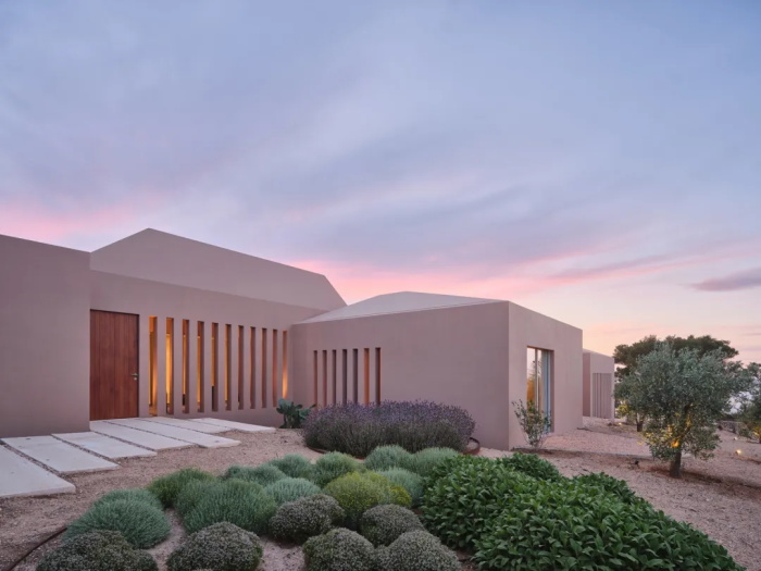 这座单层住宅坐落于梅诺卡岛的海岸线上,建筑沿着松林和原生植被覆盖的地貌展开,以微妙的折线与阶梯平台回应地形的缓坡起伏,在与场地的地貌对话中实现自然融合。面对日益频发的极端气候事件,设计策略尽量减少土地扰动,保留自然径流的连续性,提升地形的韧性。