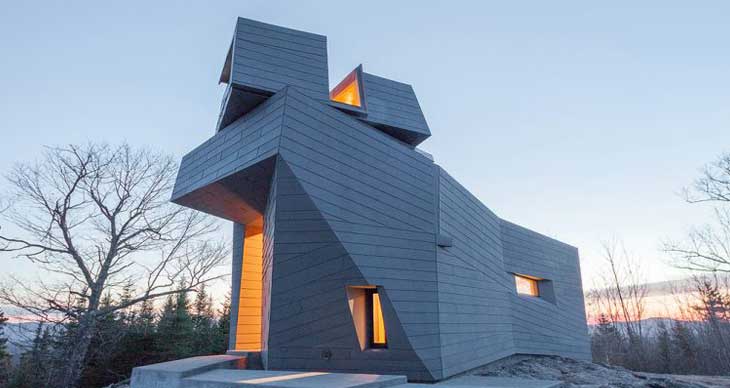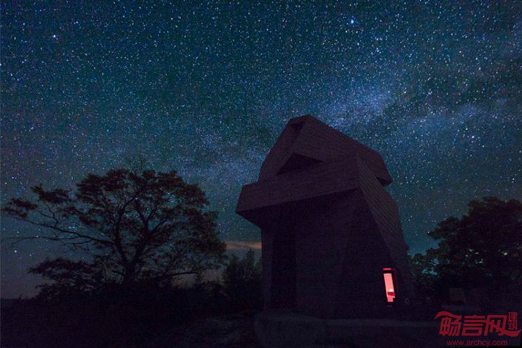 Anmahian Winton事务所完成了美国新罕布什尔的一个偏远山顶的Gemma天文台项目。场地周围都是花岗岩材质,是方圆三英里暗黑景观的中心,没有任何影响天文观测的污染源。尽管观测台的尺度一般很小,Gemma却没有采取传统的圆形结构,综合形式不仅扩大了使用面积,还响应了严酷的地理语境。