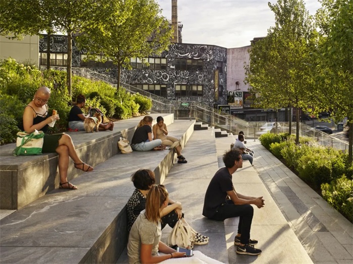 作为公共步道的高架延伸,广场为社区和文化空间提供了“街面”入口和必要的公共通道,以确保其活力。此外,向上折叠的市民广场允许零售在整个周边排列。