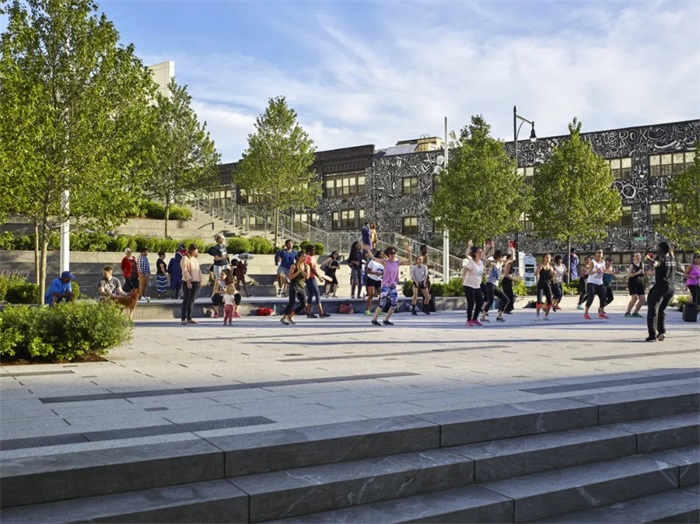 露台将被美化,以屏蔽交通噪音。多孔建筑有几个公共入口,旨在方便人们进出文化和零售空间。此外,广场的阶梯式地形可用于户外活动,如电影放映、舞蹈表演或农贸市场。