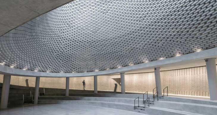 以色列Kimmel Eshkolot事务所在耶路撒冷烈士公墓完成了纪念馆设计。纪念馆包含2.3万块纪念砖,每块都铭刻了烈士姓名和去世日期。为了营造“姓名墙”,砖块构成了250米长的走廊,沿着中央纪念大厅呈现出螺旋构造。设计师表示,我们在早期就确立了这个想法,把铭记烈士姓名的砖块当成建造材料。
