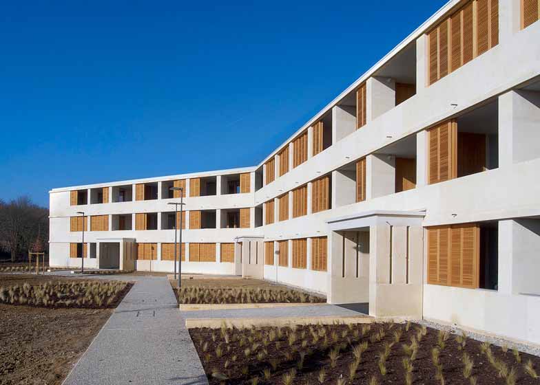 Perraudin Architecture建筑事务所设计了位于法国图卢兹附近的社会住宅。建筑拥有石质墙壁,建筑师希望借此证明“任何现代建筑均能采用石材建造”的理念。