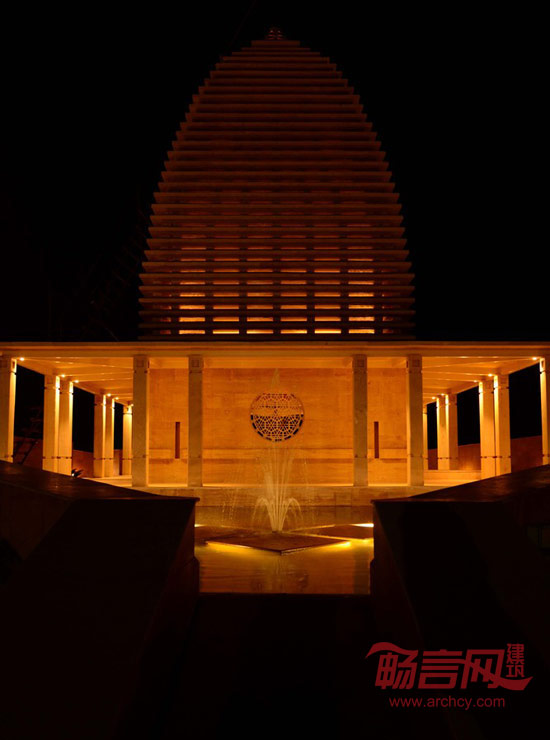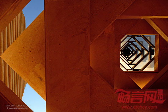 这座庙宇是为显婆神而建,在印度经文和神话记载中,显婆神是守卫者和毁灭者的双重化身。庙宇采用重型石头作为材料,而建造形式又较为轻巧,当夜幕降临,石材外观隐去,而灯光下整座庙宇又化身为沙丘中的一盏灯笼。白天,外部光线照进庙宇,而到了夜晚,庙宇内的光线又从里向外透射出来,仿佛是在发出一种邀请。