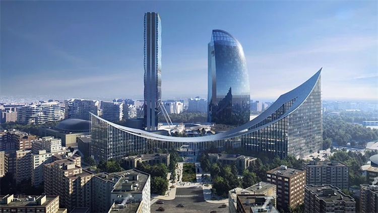 正在意大利米兰施工中的Citylife混合功能区将迎来由BIG建筑事务所(比雅克英格尔斯建筑事务所)设计的重要建筑。该区域已经有扎哈、里伯斯金等知名建筑设计的建筑入驻,于2007年开工,预计2023年完工。名为The Portico(柱廊),BIG设计的项目将成为通向城市的新门户,包含两座由140米悬吊屋面结构连接的独立建筑。