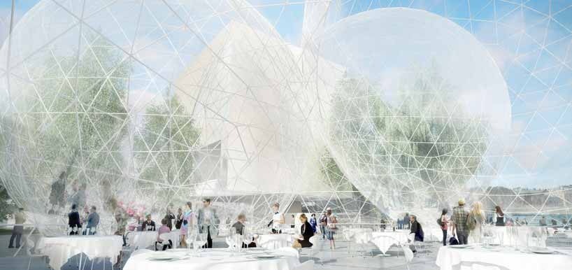 日本SANAA建筑事务所为瑞典斯德哥尔摩诺贝尔中心总部提供了设计方案。项目由六个透明球体构成,大小比例各异,反映了城市起伏的天际线。项目设计旨在营造学习场所和休闲场地,“诺贝尔球体”竞赛方案创造了一个全年开放的地区新公民论坛。相互结合交叉的球体创造出与场地各处紧密相连的空间。建筑透明表皮保证室内区域与周边环境具有连贯的直接联系,增进了中心同海岸的关系,提供了不受阻碍的视野。