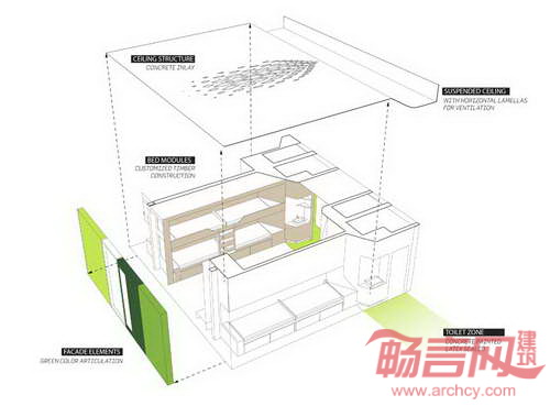 LAVA国际建筑事务所设计的德国拜罗伊特青年旅舍基于功能和代表性目的。建筑具有Y型结构,体现了Y世代旅行者的态度,旨在创造“时髦的设计、特殊的个性”,配备上网条件,提供社区体验,而不仅仅是干净的床铺和洗浴设备。设计方案围绕醒目的中庭而设,具有清晰的结构布局,内部以及同户外体育场和花园拥有良好的连接性。项目共有180个床位,目前处于设计开发阶段,预计将于2015年初完工。