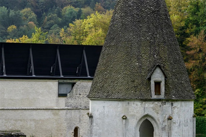 自 12 世纪以来,在山谷的尽头就矗立着 Zice Charterhouse 以前的上层修道院。这是一个经过深思熟虑的解决方案,在几个关键点上解决了半个世纪以来关于历史建筑材料的可接受性和如何保护的难题。